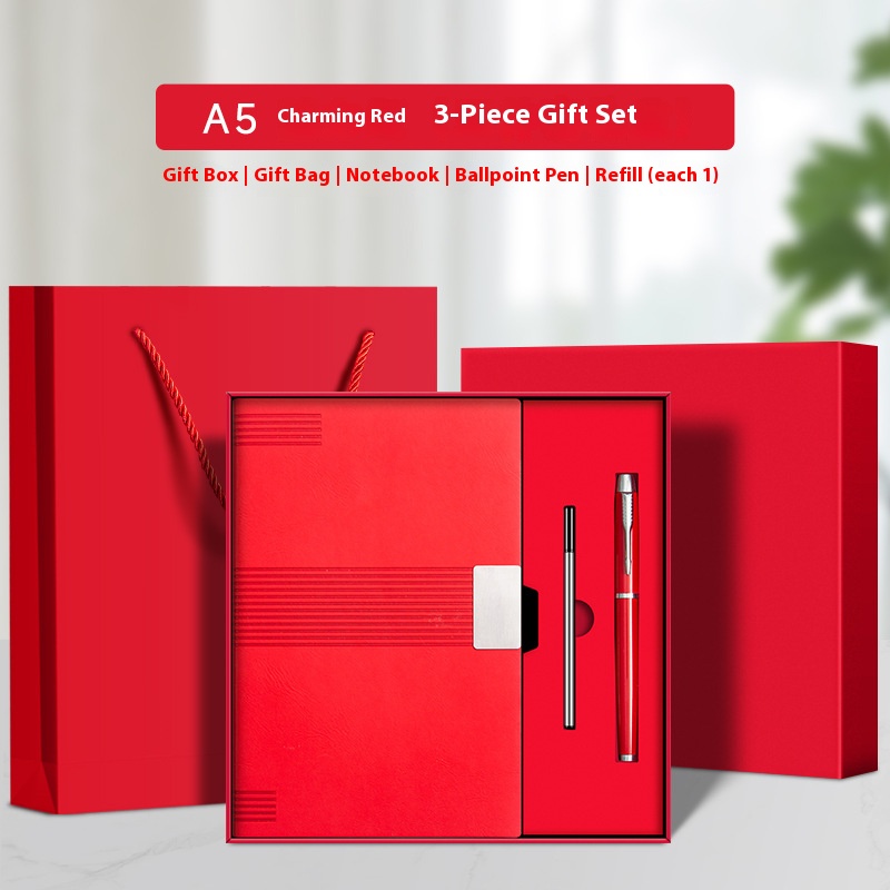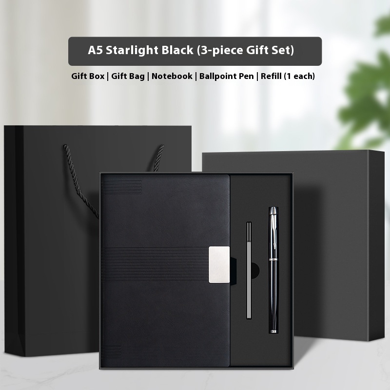 Business Customized HardCover A5 PU Leather Notebook Gift Stationery Set Corporate With Box and Pen